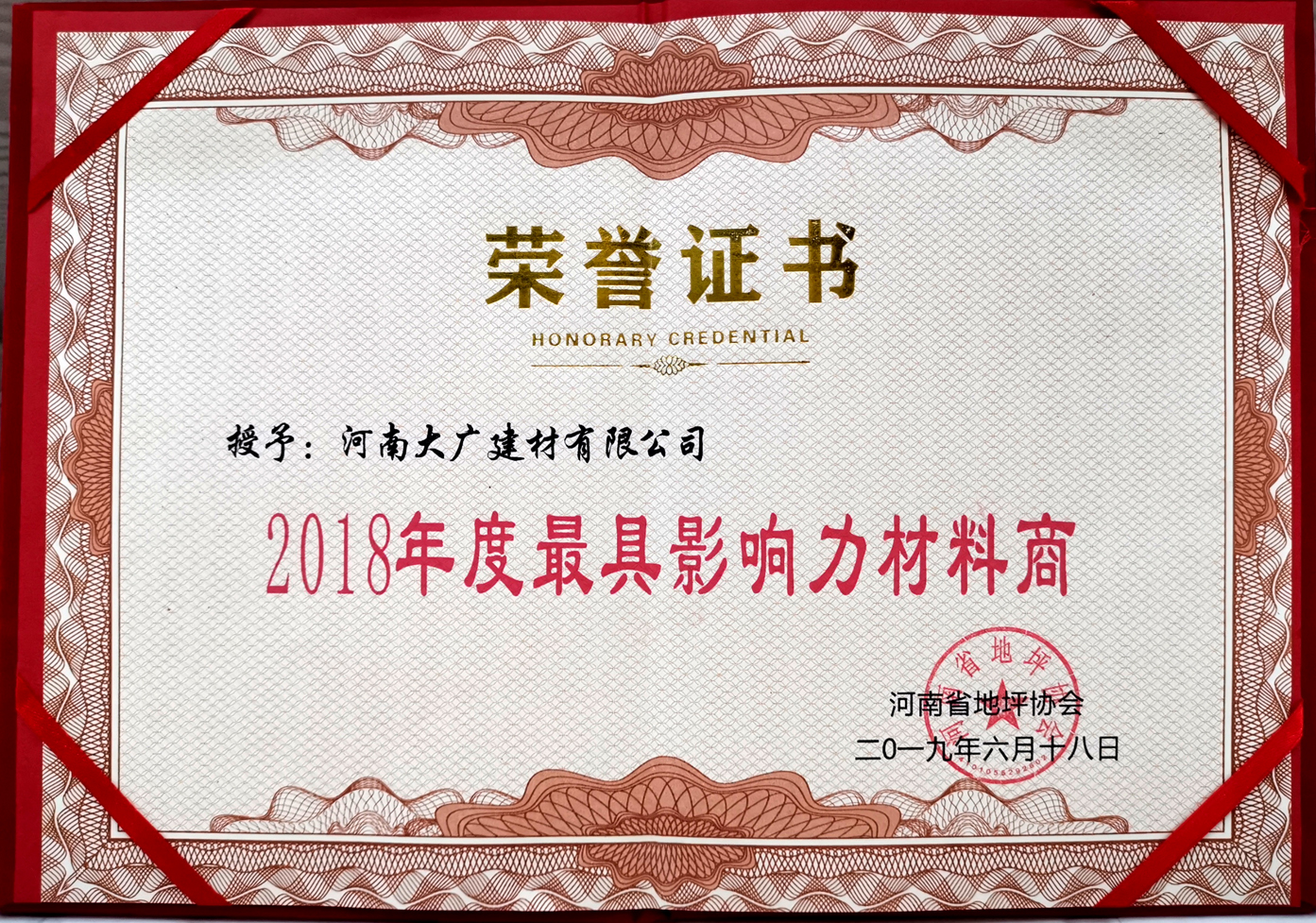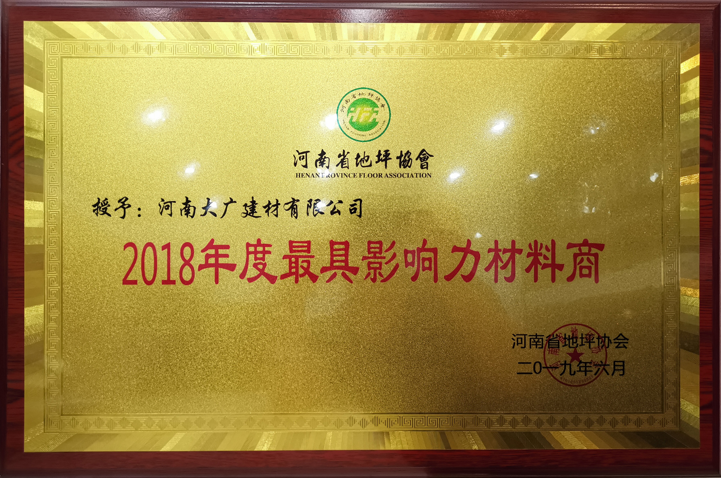 榮獲:河南省地坪協(xié)會*具影響力材料商 稱號